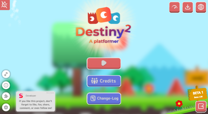 Destiny, a platformer, is a platform game made with Scratch, where there are about twenty levels, with plenty of dangers to avoid! The textures are in full quality, and the game has been crafted down to the smallest detail. A thrilling adventure awaits you, and it awaits you now.